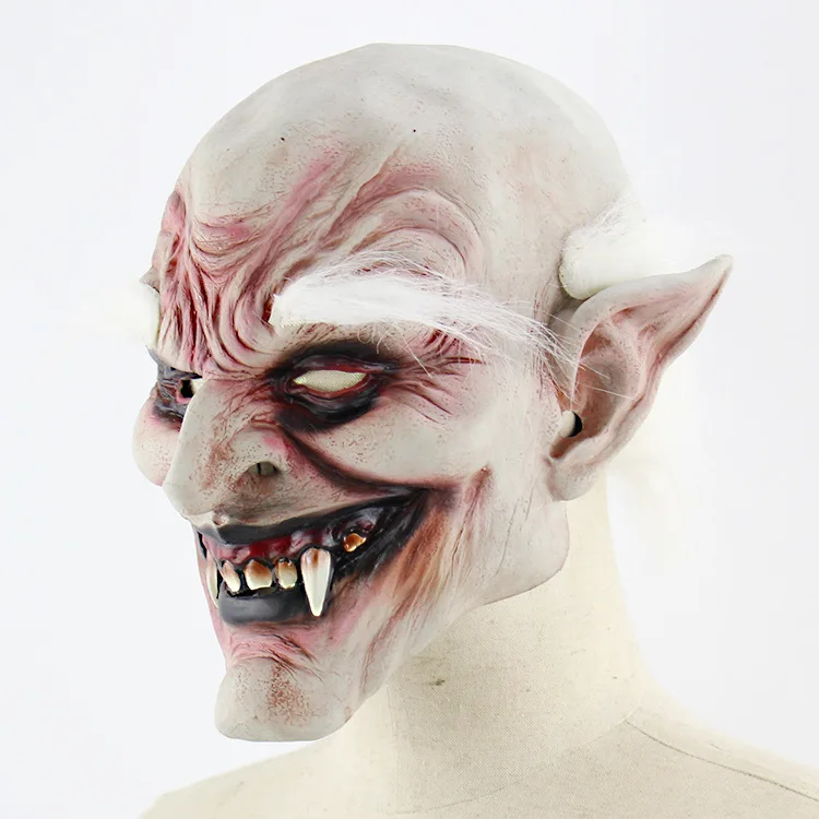 White browed old demon Halloween horror devil mask vampire haunted house dressing props latex hood - Novelty
